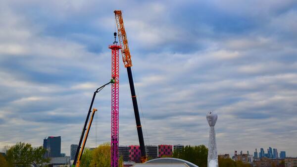«Остров Мечты» приступил к установке одного из самых зрелищных аттракционов открытого парка — 68-метровой вращающейся башни падения, сравнимой по высоте с 25-этажным домом.